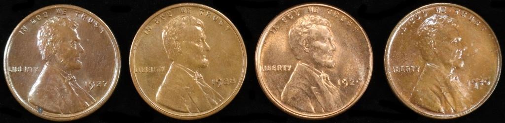 1927, 1928, 1929, 1930 LINCOLN CENTS CH/GEM BU
