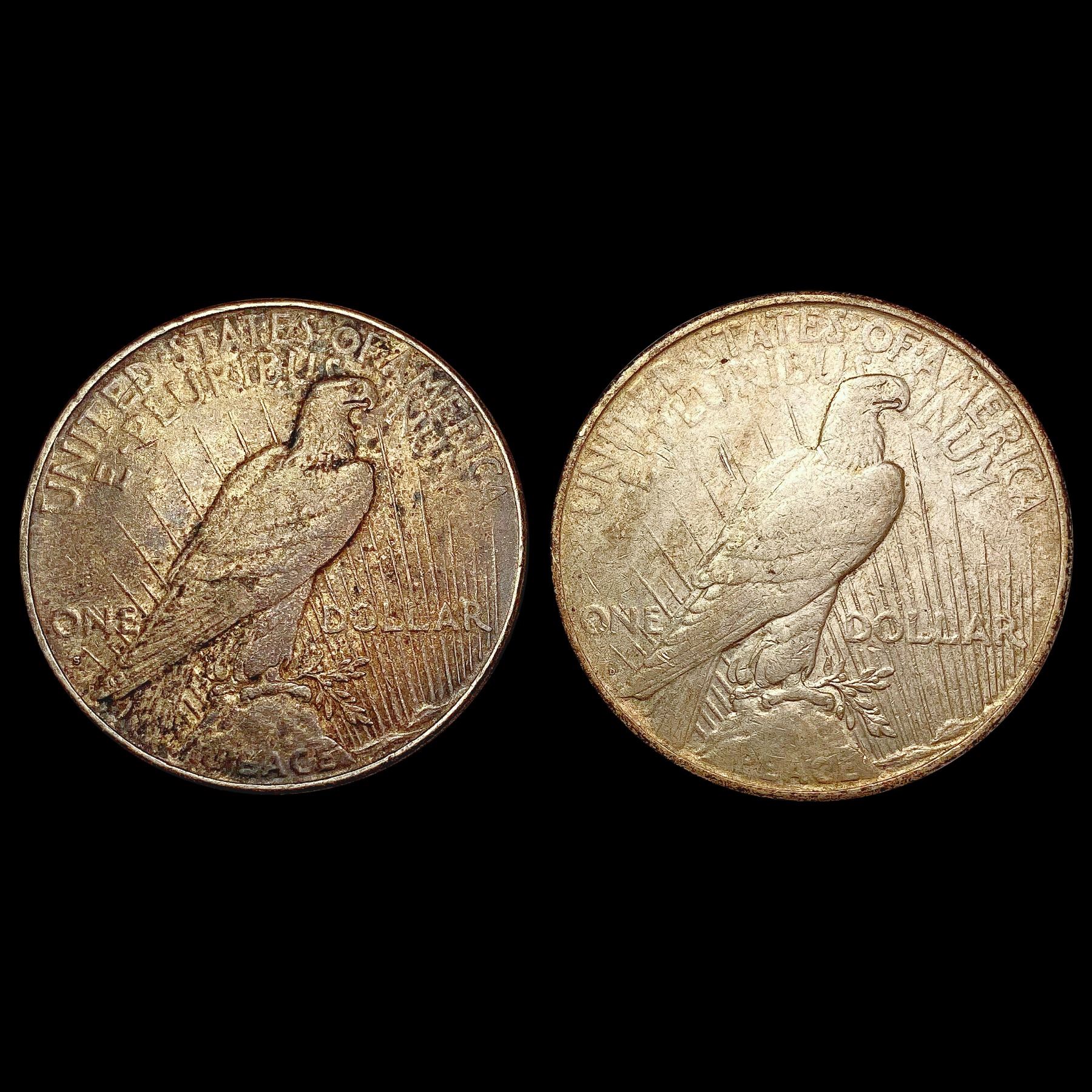 1927-1934 Pair of US SIlver Peace Dollars [2 Coins] HIGH GRADE