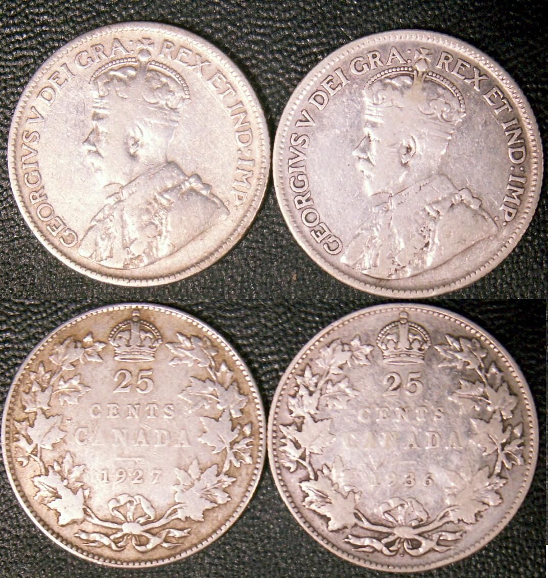 1927, 1936 Dot 25¢, both G-6 to VG-8.