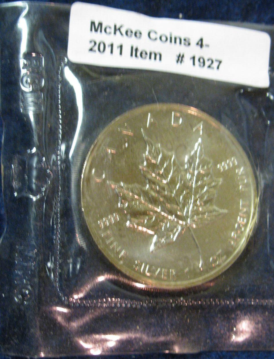 1927. 1988 One Ounce .999 Fine Silver Maple Leaf. In original plastic.