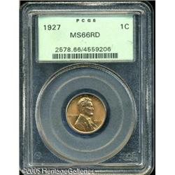 <B>1927 1C MS66 Red PCGS.</B></I> The golden-orange surfaces exhibit swirling mint luster and carefully preserved features. A few carbon flecks are confined mostly to the reverse. Lot:5500