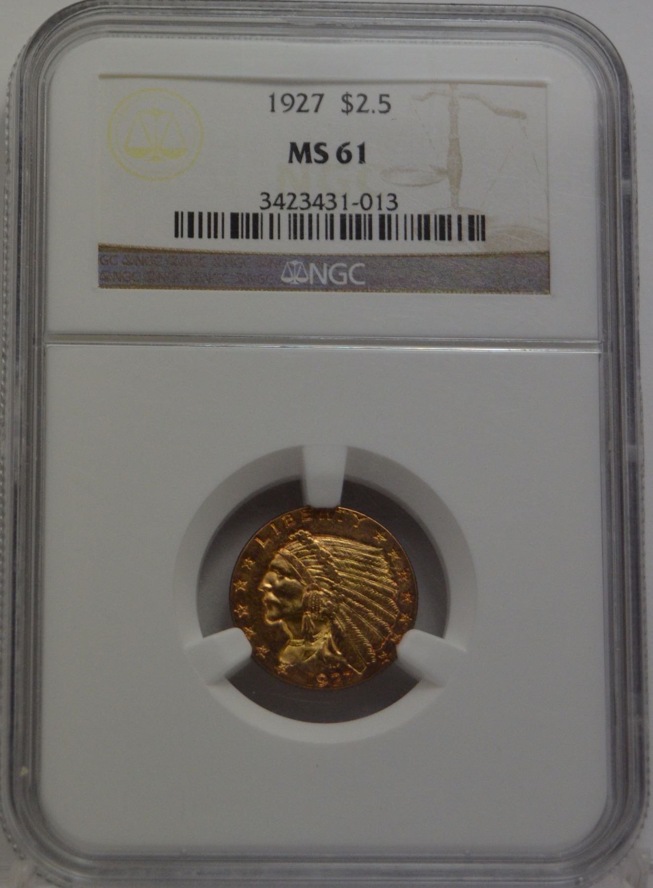 1927 $2 1/2 Gold DOL. NGC MS 61