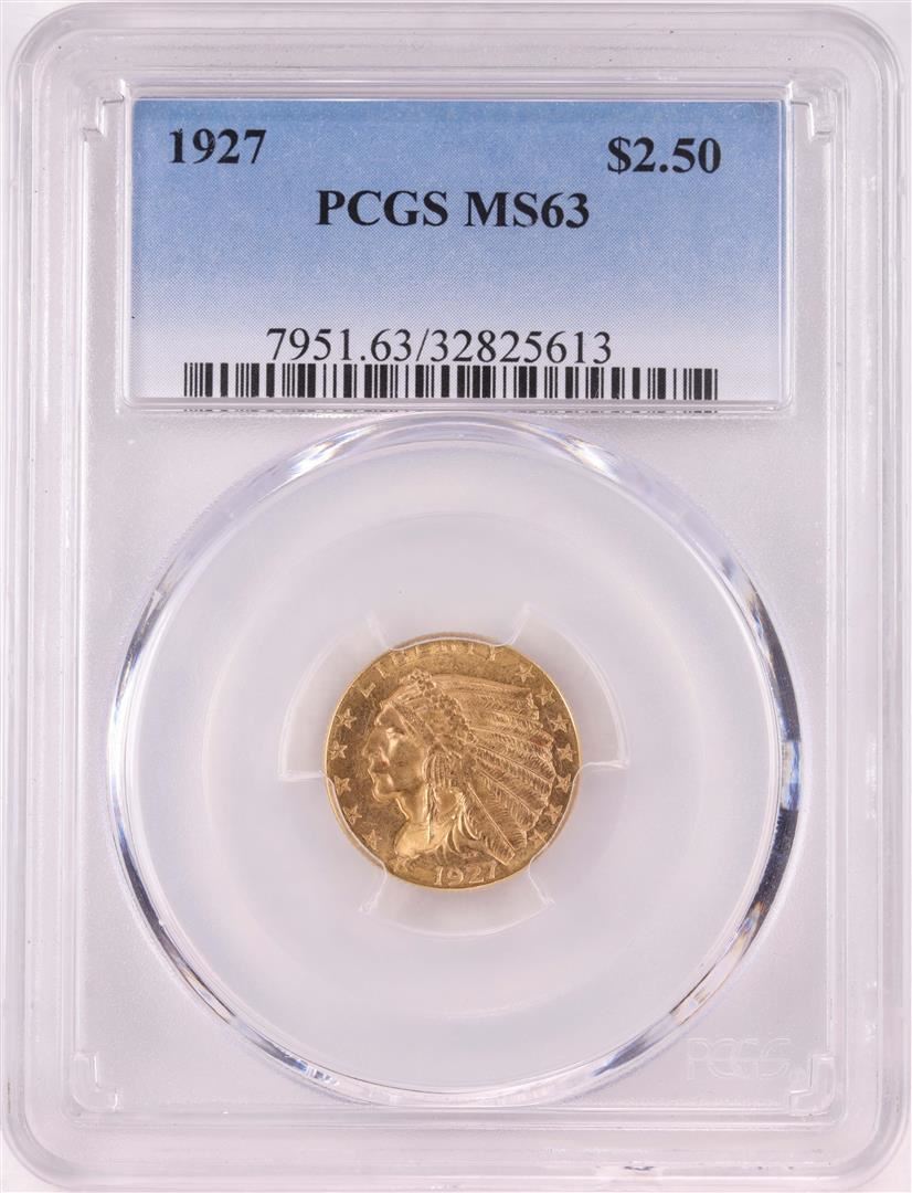 One 1927 $2 1/2 Indian Head Quarter Eagle Coin PCGS MS63. PCGS Graded.