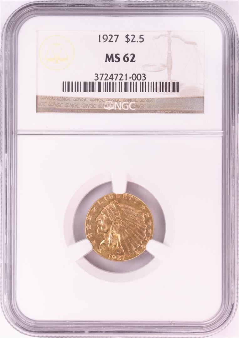 One 1927 $2 1/2 Indian Head Quarter Eagle Gold Coin NGC MS63. NGC Certified.