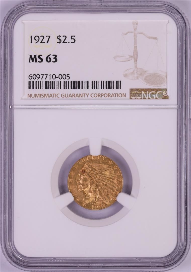 One 1927 $2 1/2 Indian Head Quarter Eagle Gold Coin NGC MS63. NGC Certified.