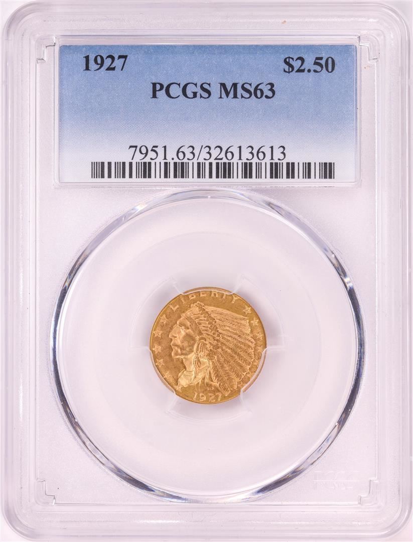 One 1927 $2 1/2 Indian Head Quarter Eagle Gold Coin PCGS MS63.