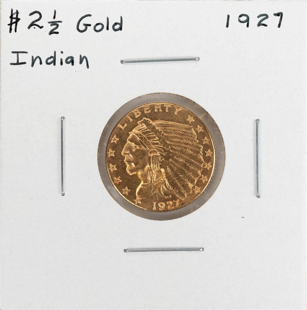 One 1927 $2 1/2 Indian Head Quarter Eagle Gold Coin.