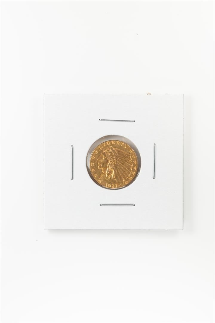 One 1927 $2 1/2 Indian Head Quarter Eagle Gold Coin.