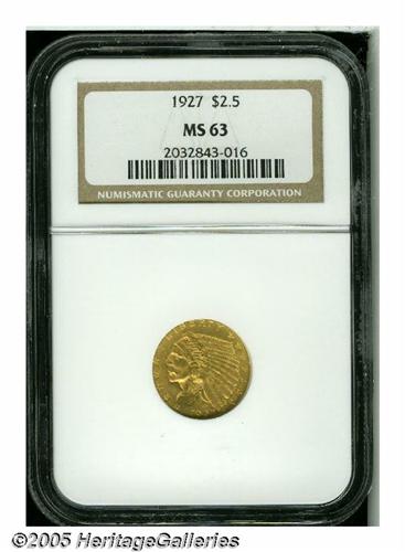<B>1927<$2 1/2> MS63 NGC.</B></I> Straw-gold patina contains traces of light tan color overlying softly lustrous surfaces. The design elements are generally well struck.<BR><I>From the Dr. Kurt Peters Collection.</B></I> From the Dr. Kurt Peters Collection.