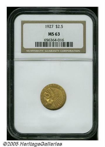 1927 $2 1/2 MS63 NGC. Well struck and satiny, wit