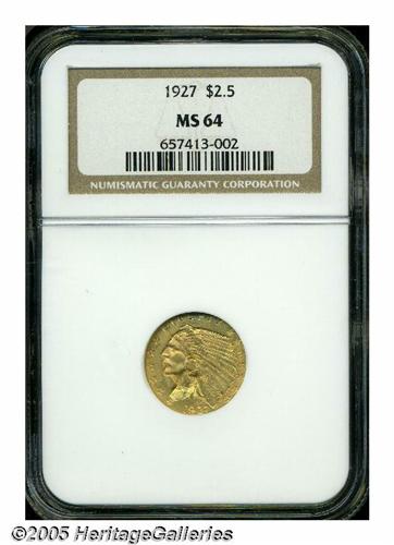 <B>1927<$2 1/2> MS64 NGC.</B></I> Highly lustrous with frosty yellow-gold surfaces and exceptional eye appeal.