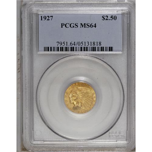 1927 $2 1/2 MS64 PCGS. A nicely struck example with ho