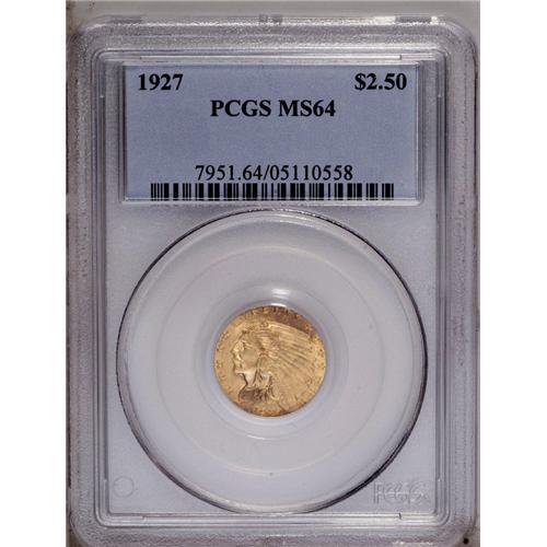 <B>1927<$2 1/2> MS64 PCGS.</B></I> Frosty and lustrous with brilliant yellow-gold surfaces and splashes of orange toning.