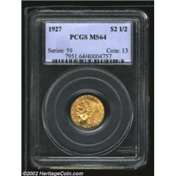 1927 $2 1/2 MS64 PCGS. Pinkish patina lurks within the recesses of the devices. A nicely struck near