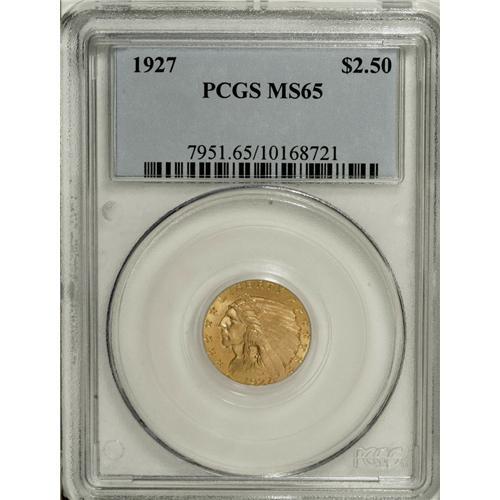 1927 $2 1/2 MS65 PCGS. At 388,000 pieces struck, the 1