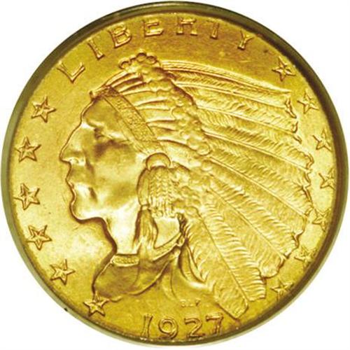 <B>1927<$2 1/2> MS65 PCGS.</B></I> The 1927 is often used as a type coin for the Indian quarter eagle design. And for good reason. Even lower graded pieces display bright mint luster and above average eye appeal for the type. This piece shows softly frosted surfaces and strong striking details with an overlay of light reddish patina on each side.