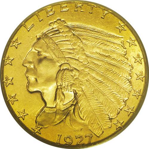 <B>1927<$2 1/2> MS65 PCGS.</B></I> Vibrant luster bathes this undisturbed and attractively struck Gem. Rich sunrise-gold toning endows the fields, and cedes to faint olive hues on the Indian's neck and profile. The 1927 is among the more available dates in the popular gold series, but is seldom seen above the MS65 level. Encapsulated in a green label PCGS holder.