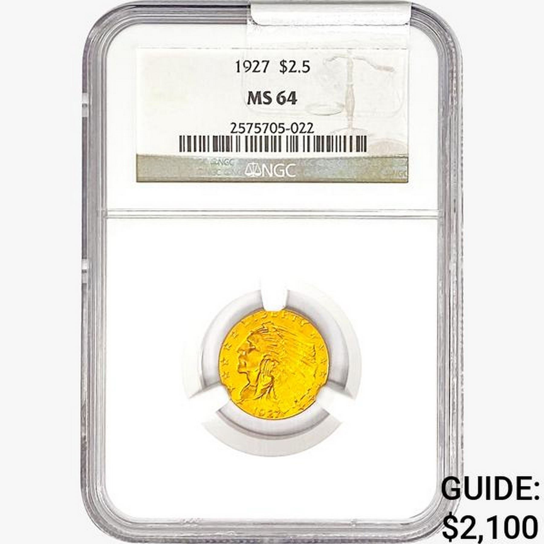 1927 $2.50 Gold Quarter Eagle NGC MS64