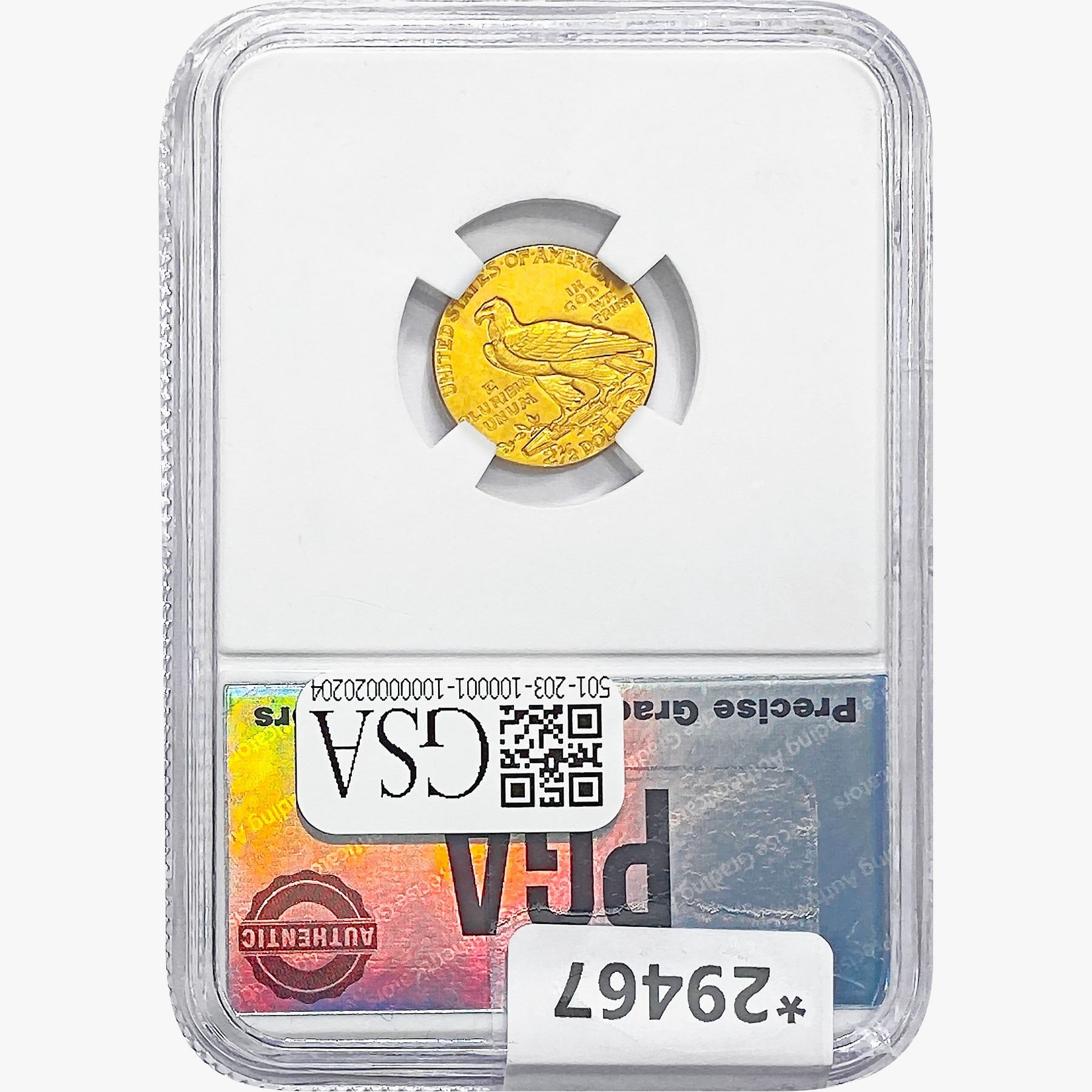 COINS AND CURRENCY LISTED IN GSA’S CATALOG AS GRADED AND ENCAPSULATED BY PCGS, NGC, ANACS, ICG, PCGS CURRENCY, PMG, PCGS BANKNOTE GRADING, CMC OR ANY OTHER THIRD-PARTY GRADING SERVICE ARE LIKEWISE SOLD “AS-IS” EXCEPT AS EXPRESSLY SET FORTH HEREIN. ALL THIRD-PARTY GRADING SERVICE GUARANTEES, INCLUDING AUTHENTICITY, ARE THE SOLE RESPONSIBILITY OF THE THIRD-PARTY GRADING SERVICE AND NOT WARRANTIES OR GUARANTEES OF GSA. BIDDERS SHOULD CONTACT THESE THIRD-PARTY GRADING SERVICES DIRECTLY WITH RESPECT TO ANY CLAIMS OR QUESTIONS THEY MAY HAVE CONCERNING THEIR GUARANTEES AND WARRANTIES. BIDDERS ACKNOWLEDGE AND AGREE THAT AUCTIONEER IS NOT BOUND BY OR LIABLE FOR ANY OPINION OR CERTIFICATION BY ANY THIRD-PARTY GRADING SERVICE. REMOVAL OF A PRODUCT FROM ITS PROTECTIVE CASING OR HOLDER OR ALTERATION OF ANY COIN HOLDER WAIVES ALL RIGHTS CONCERNING THE PRODUCT CONTAINED THEREIN.