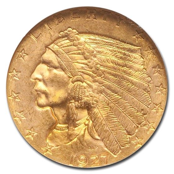 One piece 1927 $2.50 Indian Gold Quarter Eagle MS-65 NGC