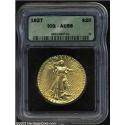 <table><tr><td><TABLE cellSpacing=0 cellPadding=0 width="100%" bgColor=#000000 border=0><TBODY> <TR><TD width="100%"><TABLE cellSpacing=1 cellPadding=3 width="100%" border=0><TBODY><TR><TD width="100%" bgColor=#79735c><FONT face=arial color=#ffffff size=3><B>Description</B> </FONT></TD></TR><TR><TD width="100%" bgColor=#ffffff><FONT face=arial size=2><B>1927 $20 AU58 ICG.</B></I> Unusually bright with only the slightest rubbing evident.<BR><I>From The Jerry Doty Collection.</B></I> </FONT></TD></TR></TBODY></TABLE></TD></TR></TBODY></TABLE><BR><A name=PricesRealized></A><TABLE cellSpacing=0 cellPadding=0 width="100%" bgColor=#000000 border=0><TBODY><TR><TD width="100%"><TABLE cellSpacing=1 cellPadding=3 width="100%" border=0><TBODY><TR><TD width="100%" bgColor=#79735c><A name=PR><FONT face=arial color=#ffffff size=3><B>Previous Prices from Heritage Auctions</B> </FONT></A></TD></TR><TR><TD bgColor=#f6f6ed><TABLE cellSpacing=0 cellPadding=0 width="100%" border=1><TBODY><TR><TD align=middle width="33%"><B>Date</B></TD><TD align=middle width="33%"><B>Service</B></TD><TD align=middle width="33%"><B>Price</B></TD></TR><TR bgColor=whitesmoke><TD width="33%"><B>05/05/2003</B></TD><TD width="33%">PCGS</TD><TD width="33%">$400.20</TD></TR><TR bgColor=whitesmoke><TD width="33%"><B>07/29/2002</B></TD><TD width="33%">PCGS</TD><TD width="33%">$391.00</TD></TR></TBODY></TABLE></TD></TR><TR><TD bgColor=#ffffff><FONT face=arial size=1 ?>PLEASE NOTE: All prices realized reflect the final hammer price PLUS the buyer's premium in auctions that charge a buyer's premium. Each item has a notation at the top of the listing indicating whether that lot included a buyer's premium. Example: A item that sells with a final hammer price of $100 and a 20% buyer's premium will display with a price realized of $120. All information listed is intended to be as accurate as possible, but errors are possible. Please use this guide carefully and inform us of any inaccuracies. </FONT></TD></TR></TBODY></TABLE></TD></TR></TBODY></TABLE><BR><TABLE cellSpacing=0 cellPadding=0 width="100%" bgColor=#000000 border=0><TBODY><TR><TD width="100%"><TABLE cellSpacing=1 cellPadding=3 width="100%" border=0><TBODY><TR><TD width="100%" bgColor=#79735c colSpan=6><FONT face=arial color=#ffffff size=3><B>Price Guide*</B> </FONT></TD></TR><TR bgColor=#f6f6ed><TD align=middle><B>Grade</B> </TD><TD align=middle><B>Coin World<BR>(Trends)</B> </TD><TD align=middle><B>Numismedia<BR>Retail</B> </TD><TD align=middle><B>Numismedia<BR>Wholesale</B> </TD><TD align=middle><B>Coin<BR>Universe</B> </TD><TD align=middle><B>Heritage<BR>Value Index</B> </TD></TR><TR bgColor=#ffffff><TD align=middle>55</TD><TD align=right>$485.00</TD><TD align=right>$472.00</TD><TD align=right>$410.00</TD><TD align=right>$510.00</TD><TD align=right>$378.06</TD></TR><TR style="FONT-WEIGHT: bold" bgColor=#cccfdd><TD align=middle>58</TD><TD align=right>$500.00</TD><TD align=right>$476.00</TD><TD align=right>$414.00</TD><TD align=right>---</TD><TD align=right>$385.63</TD></TR><TR bgColor=#ffffff><TD align=middle>60</TD><TD align=right>$525.00</TD><TD align=right>$482.00</TD><TD align=right>$419.00</TD><TD align=right>$530.00</TD><TD align=right>$398.69</TD></TR><TR bgColor=#ffffff><TD colSpan=6><FONT size=1>*All information listed is intended to be as accurate as possible, but errors are possible. No item may be returned or refused based on this information which is provided as a service to our customers. You should contact each pricing source directly to determine the accuracy of this information. </FONT></TD></TR></TBODY></TABLE></TD></TR></TBODY></TABLE><BR><TABLE cellSpacing=0 cellPadding=0 width="100%" bgColor=#000000 border=0><TBODY><TR><TD width="100%"><TABLE cellSpacing=1 cellPadding=3 width="100%" border=0><TBODY><TR><TD width="100%" bgColor=#79735c><FONT face=arial color=#ffffff size=3><B>Population Guide</B> </FONT></TD></TR><TR bgColor=#ffffff><TD align=middle><!-- Begin Output of Population Grid--><TABLE cellSpacing=0 cellPadding=0 width="100%" border=0><TBODY><TR><TD vAlign=center><TABLE cellSpacing=0 width="100%" border=1 cellsadding="3"><TBODY><TR><TD vAlign=center><TABLE cellSpacing=0 cellPadding=3 width="100%" border=1><TBODY><TR><TD vAlign=center align=middle bgColor=#f0f1e8 colSpan=2 <CENTER><FONT face=Arial size=2><B>PCGS Pop </B></FONT><CENTER></CENTER></TD><TD vAlign=center align=middle bgColor=#f0f1e8 colSpan=2><CENTER><FONT face=Arial size=2><B>NGC Pop</B></CENTER></FONT></TD></TR><TR><TD vAlign=center><FONT face=Arial size=2>(58)</FONT> </TD><TD vAlign=center align=right><FONT face=Arial size=2>1193</FONT> </TD><TD vAlign=center><FONT face=Arial size=2>(58)</FONT> </TD><TD vAlign=center align=right><FONT face=Arial size=2>193</FONT> </TD></TR><TR><TD vAlign=center><FONT face=Arial size=2>(>58)</FONT> </TD><TD vAlign=center align=right><FONT face=Arial size=2>78138</FONT> </TD><TD vAlign=center><FONT face=Arial size=2>(>58)</FONT> </TD><TD vAlign=center align=right><FONT face=Arial size=2>89573</FONT> </TD></TR></TBODY></TABLE></TD></TR></TBODY></TABLE></TD></TR></TBODY></TABLE><!-- End Output of Population Grid--></TD></TR></TBODY></TABLE></TD></TR></TBODY></TABLE><BR><TABLE cellSpacing=0 cellPadding=0 width="100%" bgColor=#000000 border=0><TBODY><TR> Important notice: Heritage usually auctions material at the rate of 200-250 lots per hour. On some occasions eBay Live bid software or the Internet may not be able to keep up with the pace of the auction. We recommend placing a realistic absentee bid now as insurance to avoid disappointment. Occasionally the auctioneer may eliminate or reject an eBay Live bid, and the auctioneer may also reopen a lot after the close of the eBay live bidding (usually because we missed an audience bid), and may reject your bid even if it shows you as the winning bidder. By bidding via eBay Live, you agree that Heritage may award the lot to another bidder at its sole discretion under the circumstances described above or any othe