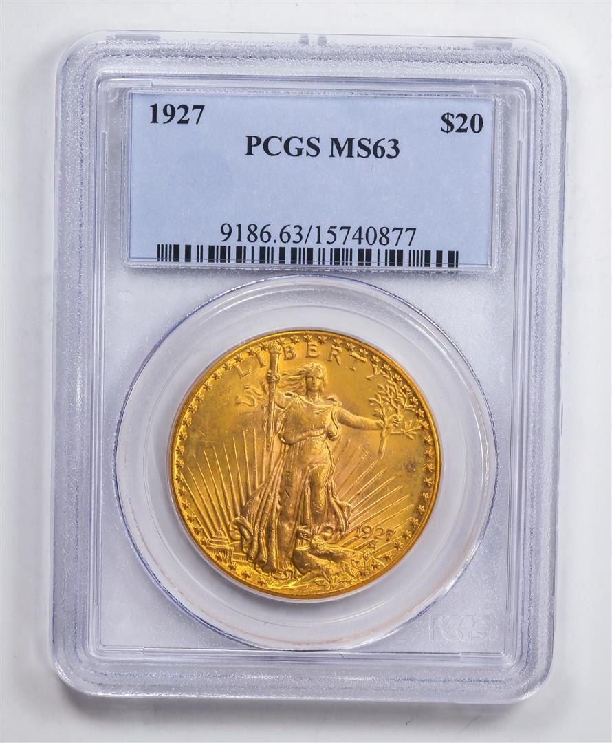 One 1927 $20 Double Eagle Gold Coin PCGS MS63.