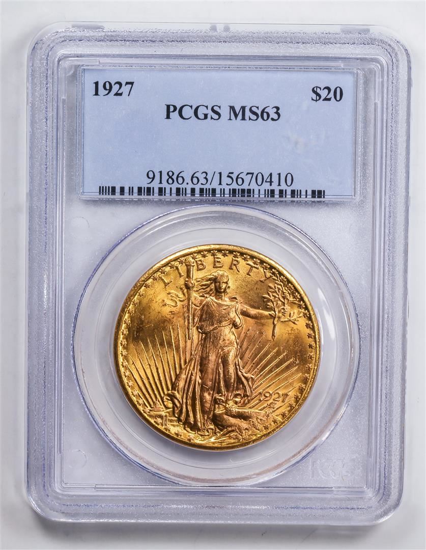 One 1927 $20 Double Eagle Gold Coin PCGS MS63.