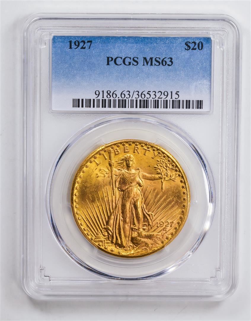 One 1927 $20 Double Eagle Gold Coin PCGS MS63.