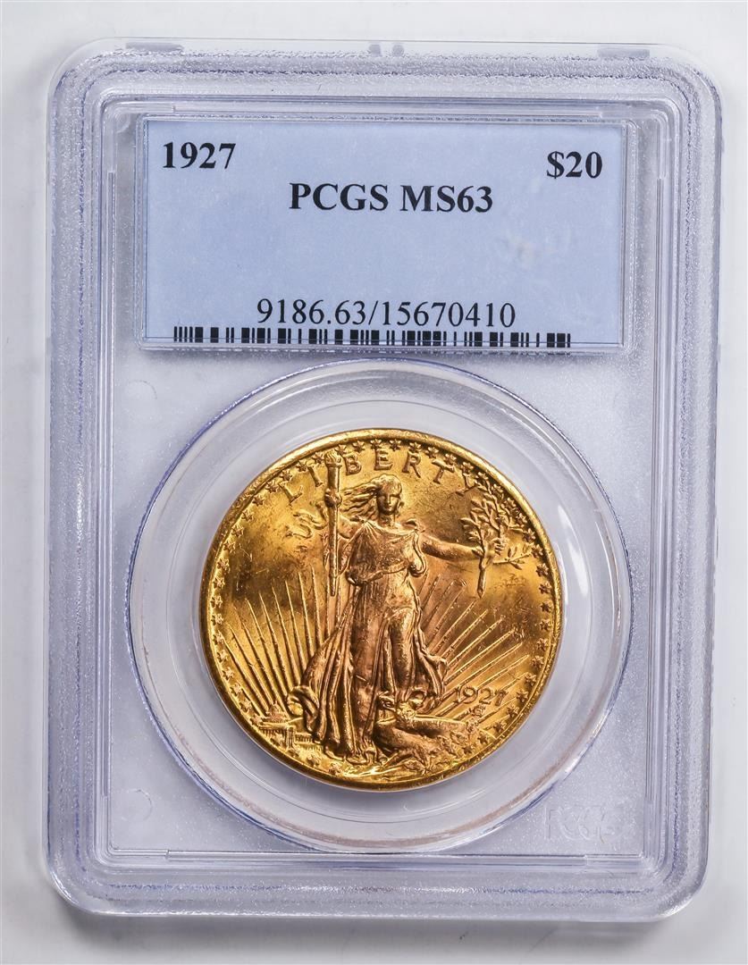 One 1927 $20 Double Eagle Gold Coin PCGS MS63.