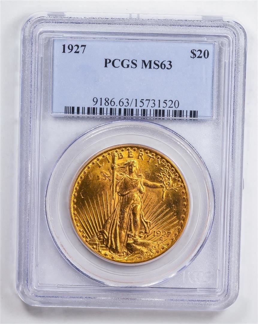 One 1927 $20 Double Eagle Gold Coin PCGS MS63.