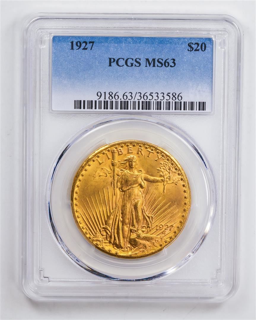 One 1927 $20 Double Eagle Gold Coin PCGS MS63.