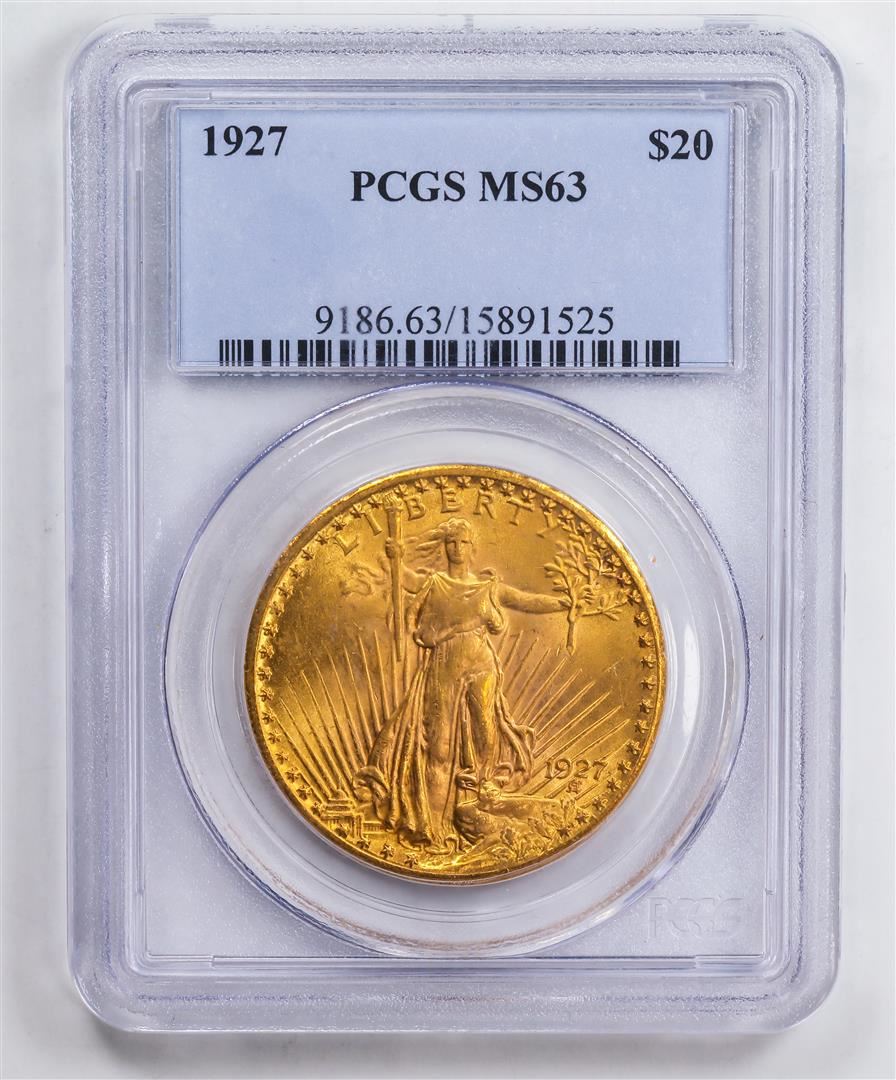 One 1927 $20 Double Eagle Gold Coin PCGS MS63.