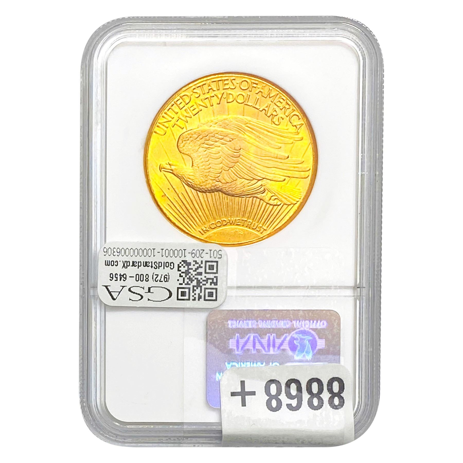 c. THREE (3) DAY RETURN POLICY. Certified Coin and Uncertified and Certified Currency lots paid for within seven (7) days of the auction or “Buy it Now” salemay be sold with three (3) day return privileges (only upon written pre-approval by GSA) unless otherwise noted in the description as “Sold As Is / No Return”. You may return Product(s) under the following limited conditions with written pre-approval from GSA: (i) within three (3) days of receipt of the Product(s), you must first notify GSA by email (at info@bidgoldstandard.com) and telephone (972-800-6456), obtain written pre-approval via email, and immediately ship the return Product(s) in their original condition, fully insured, and housed in their original holder or packaging, to the attention of “GOLD STANDARD AUCTIONS, LLC – RETURNS, 13859 Diplomat Drive, #150, Dallas, TX 75234.” Said return Product(s) must be in GSA’s possession, custody and control within thirty (30) days after the conclusion of the Product(s) auction or such return privileges are revoked without further notice and the late Product will be shipped back to the Bidder at his/her/its sole expense. A non-negotiable restocking fee of fifteen percent (15%) of the purchase price ($10.00 per Product/lot minimum) will be deducted from the refund for each returned Product (or billed directly to the Bidder). Postage and handling, customs, and other fees are not refunded. After the three-day period (from Bidder’s receipt), no Product(s) may be returned for any reason. Late remittance for purchases revokes all return privileges.