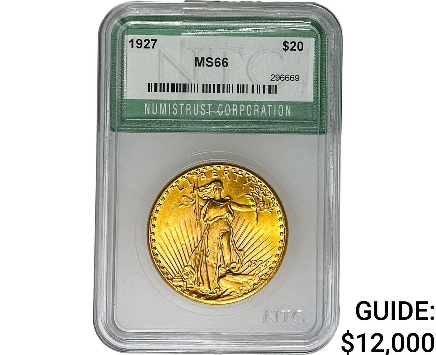 1927 $20 Gold Double Eagle NTC MS66