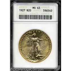 <table><tr><td><TABLE cellSpacing=0 cellPadding=0 width="100%" bgColor=#000000 border=0><TBODY> <TR><TD width="100%"><TABLE cellSpacing=1 cellPadding=3 width="100%" border=0><TBODY><TR><TD width="100%" bgColor=#79735c><FONT face=arial color=#ffffff size=3><B>Description</B> </FONT></TD></TR><TR><TD width="100%" bgColor=#ffffff><FONT face=arial size=2><B>1927 $20 MS63 ANACS.</B></I> Boldly struck and highly lustrous, with much frostier surfaces than the average Saint-Gaudens $20 piece in Mint State. There are a few orange-red alloy spots scattered over the left sides of obverse and reverse alike, and several heavy blemishes, on the reverse, seem to define the coin's grade.<BR><I>From The Jerry Doty Collection.</B></I> </FONT></TD></TR></TBODY></TABLE></TD></TR></TBODY></TABLE><BR><A name=PricesRealized></A><TABLE cellSpacing=0 cellPadding=0 width="100%" bgColor=#000000 border=0><TBODY><TR><TD width="100%"><TABLE cellSpacing=1 cellPadding=3 width="100%" border=0><TBODY><TR><TD width="100%" bgColor=#79735c><A name=PR><FONT face=arial color=#ffffff size=3><B>Previous Prices from Heritage Auctions</B> </FONT></A></TD></TR><TR><TD bgColor=#f6f6ed><TABLE cellSpacing=0 cellPadding=0 width="100%" border=1><TBODY><TR><TD align=middle width="33%"><B>Date</B></TD><TD align=middle width="33%"><B>Service</B></TD><TD align=middle width="33%"><B>Price</B></TD></TR><TR bgColor=whitesmoke><TD width="33%"><B>06/10/2003</B></TD><TD width="33%">PCGS</TD><TD width="33%">$483.00</TD></TR><TR bgColor=whitesmoke><TD width="33%"><B>06/10/2003</B></TD><TD width="33%">PCGS</TD><TD width="33%">$483.00</TD></TR><TR bgColor=whitesmoke><TD width="33%"><B>06/10/2003</B></TD><TD width="33%">PCGS</TD><TD width="33%">$483.00</TD></TR><TR bgColor=whitesmoke><TD width="33%"><B>04/08/2003</B></TD><TD width="33%">PCGS</TD><TD width="33%">$471.50</TD></TR><TR bgColor=whitesmoke><TD width="33%"><B>04/08/2003</B></TD><TD width="33%">PCGS</TD><TD width="33%">$471.50</TD></TR><TR bgColor=whitesmoke><TD width="33%"><B>04/08/2003</B></TD><TD width="33%">PCGS</TD><TD width="33%">$471.50</TD></TR><TR bgColor=whitesmoke><TD width="33%"><B>04/08/2003</B></TD><TD width="33%">PCGS</TD><TD width="33%">$471.50</TD></TR><TR bgColor=whitesmoke><TD width="33%"><B>12/17/2002</B></TD><TD width="33%">ANACS</TD><TD width="33%">$426.65</TD></TR><TR bgColor=whitesmoke><TD width="33%"><B>12/17/2002</B></TD><TD width="33%">ANACS</TD><TD width="33%">$426.65</TD></TR><TR bgColor=whitesmoke><TD width="33%"><B>12/17/2002</B></TD><TD width="33%">ANACS</TD><TD width="33%">$426.65</TD></TR><TR bgColor=whitesmoke><TD width="33%"><B>09/17/2002</B></TD><TD width="33%">ANACS</TD><TD width="33%">$414.00</TD></TR><TR bgColor=whitesmoke><TD width="33%"><B>09/17/2002</B></TD><TD width="33%">ANACS</TD><TD width="33%">$414.00</TD></TR><TR bgColor=whitesmoke><TD width="33%"><B>09/17/2002</B></TD><TD width="33%">ANACS</TD><TD width="33%">$414.00</TD></TR><TR bgColor=whitesmoke><TD width="33%"><B>09/17/2002</B></TD><TD width="33%">ANACS</TD><TD width="33%">$414.00</TD></TR><TR bgColor=whitesmoke><TD width="33%"><B>07/30/2002</B></TD><TD width="33%">PCGS</TD><TD width="33%">$414.00</TD></TR><TR bgColor=whitesmoke><TD width="33%"><B>07/30/2002</B></TD><TD width="33%">PCGS</TD><TD width="33%">$414.00</TD></TR><TR bgColor=whitesmoke><TD width="33%"><B>07/30/2002</B></TD><TD width="33%">PCGS</TD><TD width="33%">$414.00</TD></TR><TR bgColor=whitesmoke><TD width="33%"><B>07/30/2002</B></TD><TD width="33%">ANACS</TD><TD width="33%">$414.00</TD></TR><TR bgColor=whitesmoke><TD width="33%"><B>07/30/2002</B></TD><TD width="33%">ANACS</TD><TD width="33%">$414.00</TD></TR><TR bgColor=whitesmoke><TD width="33%"><B>07/30/2002</B></TD><TD width="33%">ANACS</TD><TD width="33%">$414.00</TD></TR><TR bgColor=whitesmoke><TD width="33%"><B>07/30/2002</B></TD><TD width="33%">ANACS</TD><TD width="33%">$414.00</TD></TR><TR bgColor=whitesmoke><TD width="33%"><B>03/21/2000</B></TD><TD width="33%">ANACS</TD><TD width="33%">$450.00</TD></TR><TR bgColor=whitesmoke><TD width="33%"><B>03/21/2000</B></TD><TD width="33%">ANACS</TD><TD width="33%">$450.00</TD></TR><TR bgColor=whitesmoke><TD width="33%"><B>03/21/2000</B></TD><TD width="33%">ANACS</TD><TD width="33%">$450.00</TD></TR><TR bgColor=whitesmoke><TD width="33%"><B>09/20/2003</B></TD><TD width="33%">PCGS</TD><TD width="33%">$575.00</TD></TR><TR bgColor=whitesmoke><TD width="33%"><B>09/20/2003</B></TD><TD width="33%">PCGS</TD><TD width="33%">$575.00</TD></TR><TR bgColor=whitesmoke><TD width="33%"><B>09/20/2003</B></TD><TD width="33%">PCGS</TD><TD width="33%">$575.00</TD></TR><TR bgColor=whitesmoke><TD width="33%"><B>09/20/2003</B></TD><TD width="33%">PCGS</TD><TD width="33%">$575.00</TD></TR><TR bgColor=whitesmoke><TD width="33%"><B>08/06/2003</B></TD><TD width="33%">PCGS</TD><TD width="33%">$489.90</TD></TR><TR bgColor=whitesmoke><TD width="33%"><B>08/06/2003</B></TD><TD width="33%">PCGS</TD><TD width="33%">$489.90</TD></TR><TR bgColor=whitesmoke><TD width="33%"><B>08/06/2003</B></TD><TD width="33%">PCGS</TD><TD width="33%">$489.90</TD></TR><TR bgColor=whitesmoke><TD width="33%"><B>08/06/2003</B></TD><TD width="33%">NGC</TD><TD width="33%">$483.00</TD></TR><TR bgColor=whitesmoke><TD width="33%"><B>08/06/2003</B></TD><TD width="33%">NGC</TD><TD width="33%">$483.00</TD></TR><TR bgColor=whitesmoke><TD width="33%"><B>08/06/2003</B></TD><TD width="33%">NGC</TD><TD width="33%">$483.00</TD></TR><TR bgColor=whitesmoke><TD width="33%"><B>08/06/2003</B></TD><TD width="33%">NGC</TD><TD width="33%">$483.00</TD></TR><TR bgColor=whitesmoke><TD width="33%"><B>08/06/2003</B></TD><TD width="33%">PCGS</TD><TD width="33%">$483.00</TD></TR><TR bgColor=whitesmoke><TD width="33%"><B>08/06/2003</B></TD><TD width="33%">PCGS</TD><TD width="33%">$483.00</TD></TR><TR bgColor=whitesmoke><TD width="33%"><B>08/06/2003</B></TD><TD width="33%">PCGS</TD><TD width="33%">$483.00</TD></TR><TR bgColor=whitesmoke><TD width="33%"><B>06/02/2003</B></TD><TD width="33%">NGC</TD><TD width="3