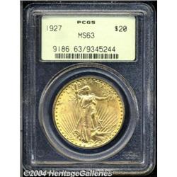 <table><tr><td><table><tr><td>1927 $20 MS63 PCGS. Light surface marks on the central devices are offset by original sky-blue, lilac, and pale orange overtones. <BR><BR><B>Important notice:</B> Heritage usually auctions material at the rate of 200-250 lots per hour. On some occasions eBay Live bid software or the Internet may not be able to keep up with the pace of the auction. We recommend placing a realistic absentee bid now as insurance to avoid disappointment. Occasionally the auctioneer may eliminate or reject an eBay Live bid, and the auctioneer may also reopen a lot after the close of the eBay live bidding (usually because we missed an audience bid), and may reject your bid even if it shows you as the winning bidder. By bidding via eBay Live, you agree that Heritage may award the lot to another bidder at its sole discretion under the circumstances described above or any other reasonable circumstances. Since eBay bids are not shown to us until we open the lot on the floor, we treat those bids just like floor bids. In most cases the floor responds before the eBay bid is presented to us, due to Internet lag time, so for consistency we have made it a policy that floor bids are always considered first over tie eBay live bids. Also please note that all Heritage lots purchased through eBay Live carry a 20% Buyer's Premium. Please make sure you read the Terms and Conditions before you bid. <BR><BR><B>IMPORTANT ANNOUNCEMENT ABOUT RESERVES:</B> Heritage now divulges all reserves on its web site 7 days before every auction. If you want to know whether the reserve on this lot has been met, and if not, what the reserve amount is, please visit this lot page on the HeritageCoin.com web site, or email: bid@HeritageGalleries.com </span></font></td></tr></table></td></tr></table>
