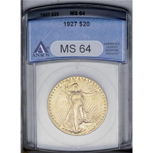 1927 $20 MS64 ANACS. Fully brilliant with attractive y 1927[$20] MS64 ANACS.
