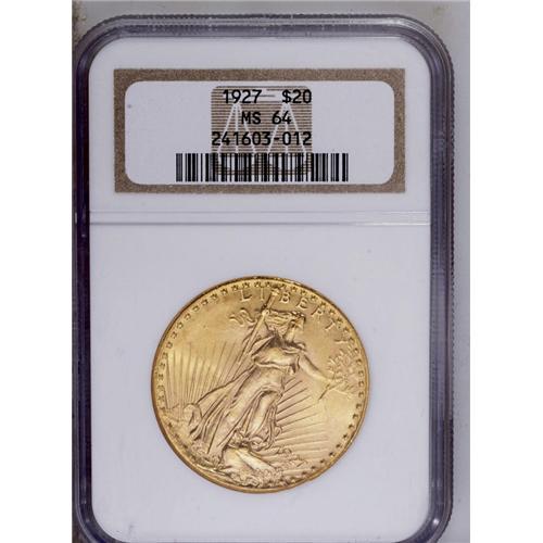 <B>1927<$20> MS64 NGC.</B></I> A lustrous near-Gem with great eye appeal. The yellow-gold surfaces have minimal marks, though some striking weakness is noted on Liberty and the eagle.