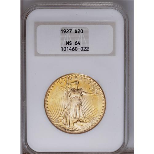 1927 $20 MS64 NGC. Boldly struck and highly lustrous,