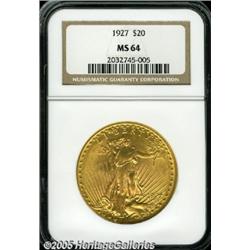 <B>1927 $20 MS64 NGC.</B></I> Well struck, with peach-gold patination and strong luster. A few minute marks in the right obverse field and on the eagle limit the grade.