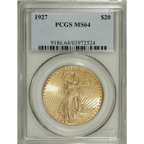 1927 $20 MS64 PCGS. This highly lustrous gold type coi