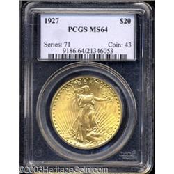 <table><tr><td><TABLE cellSpacing=0 cellPadding=0 width="100%" bgColor=#000000 border=0><TBODY> <TR><TD width="100%"><TABLE cellSpacing=1 cellPadding=3 width="100%" border=0><TBODY><TR><TD width="100%" bgColor=#79735c><FONT face=arial color=#ffffff size=3><B>Description</B> </FONT></TD></TR><TR><TD width="100%" bgColor=#ffffff><FONT face=arial size=2><B>1927 $20 MS64 PCGS.</B></I> Sharply struck and satiny. The fields and major devices are refreshingly free from luster grazes, although the sun on the lower reverse has a couple of unimportant abrasions.<BR><I>Ex: Stack's, 6/1994, lot 796, where it realized $462.</B></I> </FONT></TD></TR></TBODY></TABLE></TD></TR></TBODY></TABLE><BR><A name=PricesRealized></A><TABLE cellSpacing=0 cellPadding=0 width="100%" bgColor=#000000 border=0><TBODY><TR><TD width="100%"><TABLE cellSpacing=1 cellPadding=3 width="100%" border=0><TBODY><TR><TD width="100%" bgColor=#79735c><A name=PR><FONT face=arial color=#ffffff size=3><B>Previous Prices from Heritage Auctions</B> </FONT></A></TD></TR><TR><TD bgColor=#f6f6ed><TABLE cellSpacing=0 cellPadding=0 width="100%" border=1><TBODY><TR><TD align=middle width="33%"><B>Date</B></TD><TD align=middle width="33%"><B>Service</B></TD><TD align=middle width="33%"><B>Price</B></TD></TR><TR bgColor=whitesmoke><TD width="33%"><B>08/05/2003</B></TD><TD width="33%">NGC</TD><TD width="33%">$563.50</TD></TR><TR bgColor=whitesmoke><TD width="33%"><B>08/05/2003</B></TD><TD width="33%">ANACS</TD><TD width="33%">$529.00</TD></TR><TR bgColor=whitesmoke><TD width="33%"><B>07/29/2003</B></TD><TD width="33%">NGC</TD><TD width="33%">$540.50</TD></TR><TR bgColor=whitesmoke><TD width="33%"><B>04/08/2003</B></TD><TD width="33%">ANACS</TD><TD width="33%">$718.75</TD></TR><TR bgColor=whitesmoke><TD width="33%"><B>09/17/2002</B></TD><TD width="33%">ANACS</TD><TD width="33%">$448.50</TD></TR><TR bgColor=whitesmoke><TD width="33%"><B>10/24/2000</B></TD><TD width="33%">PCGS</TD><TD width="33%">$575.00</TD></TR><TR bgColor=whitesmoke><TD width="33%"><B>05/16/2000</B></TD><TD width="33%">NGC</TD><TD width="33%">$550.00</TD></TR><TR bgColor=whitesmoke><TD width="33%"><B>09/20/2003</B></TD><TD width="33%">NGC</TD><TD width="33%">$603.75</TD></TR><TR bgColor=whitesmoke><TD width="33%"><B>09/20/2003</B></TD><TD width="33%">NGC</TD><TD width="33%">$603.75</TD></TR><TR bgColor=whitesmoke><TD width="33%"><B>08/06/2003</B></TD><TD width="33%">NGC</TD><TD width="33%">$529.00</TD></TR><TR bgColor=whitesmoke><TD width="33%"><B>08/06/2003</B></TD><TD width="33%">PCGS</TD><TD width="33%">$529.00</TD></TR><TR bgColor=whitesmoke><TD width="33%"><B>08/06/2003</B></TD><TD width="33%">PCGS</TD><TD width="33%">$529.00</TD></TR><TR bgColor=whitesmoke><TD width="33%"><B>08/06/2003</B></TD><TD width="33%">NGC</TD><TD width="33%">$529.00</TD></TR><TR bgColor=whitesmoke><TD width="33%"><B>08/06/2003</B></TD><TD width="33%">PCGS</TD><TD width="33%">$529.00</TD></TR><TR bgColor=whitesmoke><TD width="33%"><B>08/06/2003</B></TD><TD width="33%">PCGS</TD><TD width="33%">$552.00</TD></TR><TR bgColor=whitesmoke><TD width="33%"><B>05/31/2003</B></TD><TD width="33%">PCGS</TD><TD width="33%">$552.00</TD></TR><TR bgColor=whitesmoke><TD width="33%"><B>05/05/2003</B></TD><TD width="33%">ANACS</TD><TD width="33%">$460.00</TD></TR><TR bgColor=whitesmoke><TD width="33%"><B>05/03/2003</B></TD><TD width="33%">ANACS</TD><TD width="33%">$661.25</TD></TR><TR bgColor=whitesmoke><TD width="33%"><B>03/24/2003</B></TD><TD width="33%">ANACS</TD><TD width="33%">$529.00</TD></TR><TR bgColor=whitesmoke><TD width="33%"><B>03/24/2003</B></TD><TD width="33%">PCGS</TD><TD width="33%">$552.00</TD></TR><TR bgColor=whitesmoke><TD width="33%"><B>03/24/2003</B></TD><TD width="33%">PCGS</TD><TD width="33%">$603.75</TD></TR><TR bgColor=whitesmoke><TD width="33%"><B>03/01/2003</B></TD><TD width="33%">PCGS</TD><TD width="33%">$603.75</TD></TR><TR bgColor=whitesmoke><TD width="33%"><B>03/01/2003</B></TD><TD width="33%">PCGS</TD><TD width="33%">$690.00</TD></TR><TR bgColor=whitesmoke><TD width="33%"><B>03/01/2003</B></TD><TD width="33%">PCGS</TD><TD width="33%">$632.50</TD></TR><TR bgColor=whitesmoke><TD width="33%"><B>03/01/2003</B></TD><TD width="33%">PCGS</TD><TD width="33%">$661.25</TD></TR><TR bgColor=whitesmoke><TD width="33%"><B>01/13/2003</B></TD><TD width="33%">NGC</TD><TD width="33%">$575.00</TD></TR><TR bgColor=whitesmoke><TD width="33%"><B>01/13/2003</B></TD><TD width="33%">ANACS</TD><TD width="33%">$517.50</TD></TR><TR bgColor=whitesmoke><TD width="33%"><B>09/30/2002</B></TD><TD width="33%">PCGS</TD><TD width="33%">$506.00</TD></TR><TR bgColor=whitesmoke><TD width="33%"><B>09/30/2002</B></TD><TD width="33%">PCGS</TD><TD width="33%">$506.00</TD></TR><TR bgColor=whitesmoke><TD width="33%"><B>09/30/2002</B></TD><TD width="33%">ANACS</TD><TD width="33%">$471.50</TD></TR><TR bgColor=whitesmoke><TD width="33%"><B>06/10/2002</B></TD><TD width="33%">PCGS</TD><TD width="33%">$506.00</TD></TR><TR bgColor=whitesmoke><TD width="33%"><B>06/10/2002</B></TD><TD width="33%">NGC</TD><TD width="33%">$494.50</TD></TR><TR bgColor=whitesmoke><TD width="33%"><B>06/10/2002</B></TD><TD width="33%">PCGS</TD><TD width="33%">$483.00</TD></TR><TR bgColor=whitesmoke><TD width="33%"><B>04/28/2002</B></TD><TD width="33%">PCGS</TD><TD width="33%">$471.50</TD></TR><TR bgColor=whitesmoke><TD width="33%"><B>04/28/2002</B></TD><TD width="33%">PCGS</TD><TD width="33%">$483.00</TD></TR><TR bgColor=whitesmoke><TD width="33%"><B>04/28/2002</B></TD><TD width="33%">PCGS</TD><TD width="33%">$471.50</TD></TR><TR bgColor=whitesmoke><TD width="33%"><B>11/15/2001</B></TD><TD width="33%">ANACS</TD><TD width="33%">$460.00</TD></TR><TR bgColor=whitesmoke><TD width="33%"><B>10/06/2001</B></TD><TD width="33%">NGC</TD><TD width="33%">$471.50</TD></TR><TR bgColor=whitesmoke><TD width="33%"><B>08/05/2001</B></TD><TD width="33%">NGC</TD><TD width="33%">$437.00</TD></TR><TR bgColor=whitesmoke><TD width="33%"><B>06/02/2001</B></TD><TD width="33%">PCGS</TD><TD 