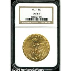 <B>1927 $20 MS65 NGC.</B></I> A high quality type coin that exhibits potent luster and a meticulous strike. A lovely souvenir of the Roaring Twenties.
