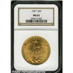 <B>1927 $20 MS65 NGC.</B></I> Vibrant and fully struck with clean surfaces. A select Gem.<BR><I>From The Richard J. Chouinard Collection of United States Coins, Part Three.</B></I>