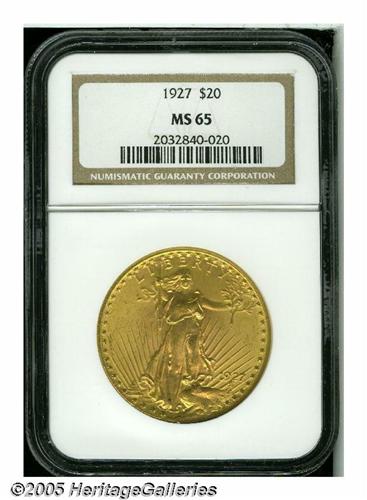 1927 $20 MS65 NGC. Well struck and satiny, with a