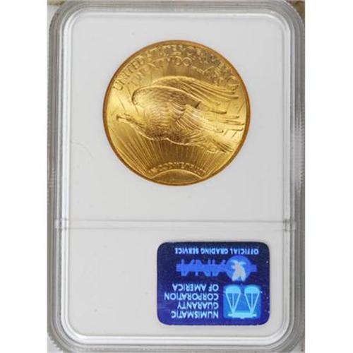 <B>1927 $20 MS65 NGC.</B></I> A subtly lustrous and solidly struck yellow-orange representative of this ubiquitous double eagle issue, carefully preserved with a touch of haze in the fields. Minor marks to the left of Liberty preclude an even finer grade.<BR><BR><b>Shipping:</b> Coins & Currency (<a target="_blank" href="http://www.heritageauctions.com/common/shipping.php">view shipping information</a>)