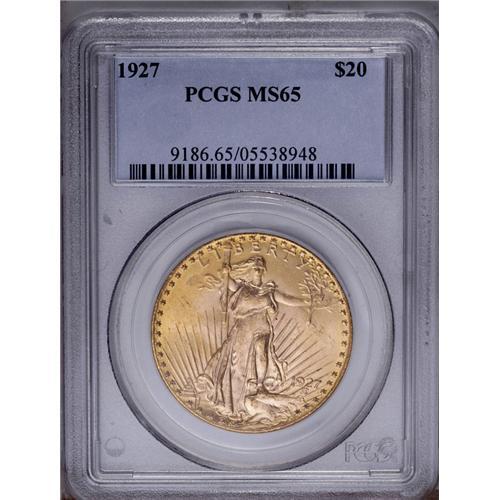 <B>1927<$20> MS65 PCGS.</B></I> A nicely struck and fully lustrous type coin without the unsightly abrasions often found on bag-stored double eagles.
