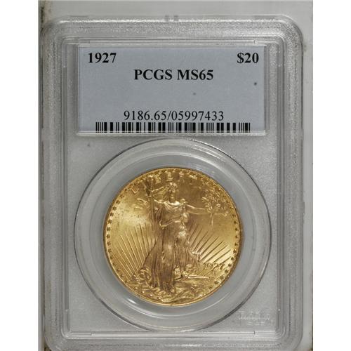 <B>1927 $20 MS65 PCGS.</B></I> A perfect coin for the grade. This coin has it all, strike, bright color and loads of luster. If you are putting together a choice to Gem type set, this is the coin for you.<BR><BR><b>Shipping:</b> Coin/Currency (<a target="_blank" href="http://www.heritageauctions.com/common/shipping.php">view shipping information</a>)