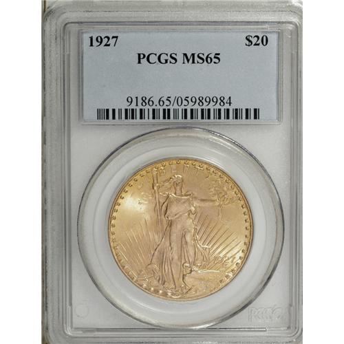 1927 $20 MS65 PCGS. Highly lustrous with satiny surfac