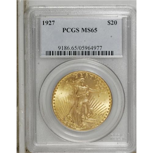 <B>1927 $20 MS65 PCGS.</B></I> Potent luster and attractive preservation call attention to this charming gold type coin. Liberty and the eagle are well struck, and only the Capitol dome exhibits any incompleteness.<BR><BR><b>Shipping:</b> Coins & Currency (<a target="_blank" href="http://www.heritageauctions.com/common/shipping.php">view shipping information</a>)